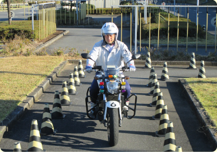 二輪車はコース内での教習になります。実際に路上に出る感覚で、シミュレーターを使って安全運転を身につけます。